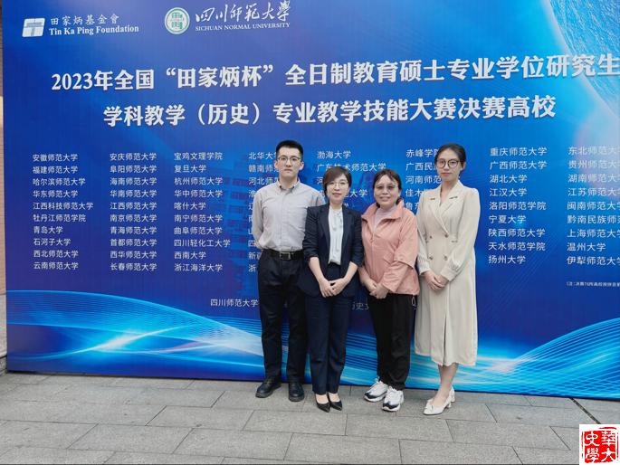 2023年10月23日,全国“田家炳杯”全日制教育硕士专业学位研究生学科教学(历史)专业教学技能大赛决赛在四川师范大学正式落下帷幕。经过激烈角逐,我校历史文化学院2022级研究生黄子豪、廖晴炜分别荣获一等奖、三等奖,杜芳老师荣获优秀指导教师奖。