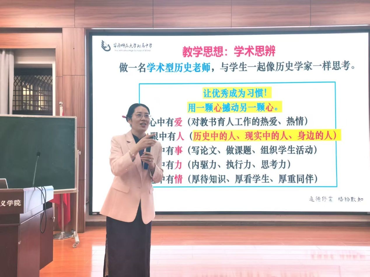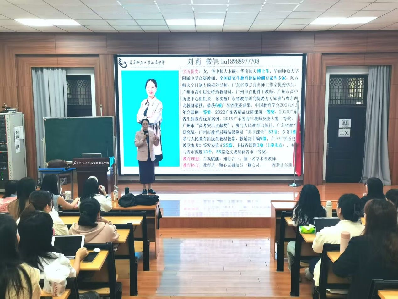 2025年4月9日下午,华南师范大学附属中学高级教师刘莉应邀于华中师范大学历史文化学院1101教室作题为“基于教学评一体化的教学改进设计与实施”的讲座。在我院关注历史教材研究的基础上,我们积极开创了“史域融合,数智启新”学科教学(历史)专业硕士融合创新教学能力提升工作坊。该工作坊以“跨学科主题学习”和“数