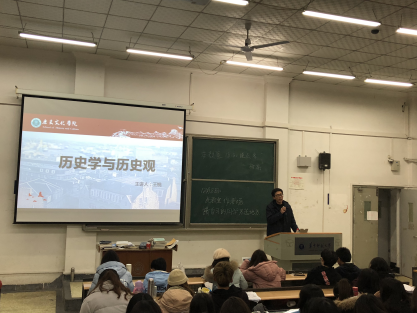之后论述了20世纪中国历史观的发展进程,然后回归到当下的现代化史观。王老师阐述了现代化史观在中国的历史进程,提醒同学们思考“现代化史观在现代社会的适应性”问题,并引导同学们反思与现代化史观相关的全球视野问题。王老师在讲座的尾端,提到同学们应该接受更多的思想资源,拥有真正的独立思考以及批判性思考的能力。