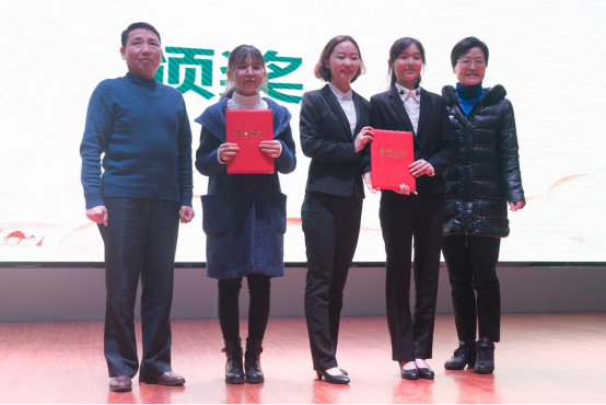(图为王先福老师与纪红老师给一等奖获得者颁奖)