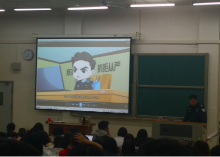 讲座后半段,张警官分享了洪山区公安局制作的微视频,主题涉及夜晚女生防被骗、网上兼职防诈骗、小额贷的危害以及如何防扒等,通过典型案例,强调生活中常见的安全问题。最后,张警官说到,安全是一种态度、一种责任、一种境界,并且祝福大家“一生安全,安全一生”讲座在大家热烈的掌声中圆满结束。 (通讯员何娅、罗贤璐)
