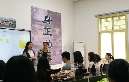 两位学姐结合自身的考研经历,为大家分享了诸多考研方面的准备与建议,给参加此次分享会的同学留下了深刻的印象。首先上台分享的是15级文化遗产与文化产业专业的赵清琳,现已成功考研至中国人民大学近现代史专业。在分享中,赵清琳主要围绕学校选择、各科复习、复试经历、考研状态四个方面展开,讲述了自己是如何确定考研学校和方向的,具体介绍了在政治、英语、专业课等各科复习中的一些学习方法和参考资料,然后又简单谈了自己的复试情况和考研状态,为学弟学妹提供了很多宝贵的意见。