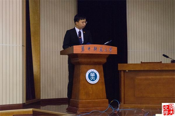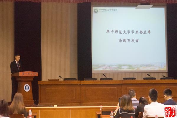 在主持人对本次活动做了简单介绍之后,华中师范大学学生会主席余逸飞发言。他指出,学生会干部工作取得了较为满意的成果,但同时,为了学生工作更好地开展,学生干部的工作作风和服务态度也需要不断改进。