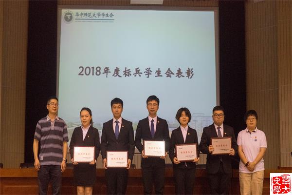 紧接着为2018年度标兵学生会表彰环节,本次大会的标兵学生会为数学与统计学院、外国语学院、历史文化学院、化学学院、信息管理学院学生会。信息管理学院党委副书记王涛作为颁奖嘉宾为标兵学生会颁奖,并激励以上获奖学生会再接再厉。