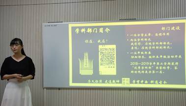 接着,大会进入各部门代表汇报工作计划环节。学院组织部、青年志愿者协会、学科部、调研部、创新创业部、维权与服务中心、文艺部、体育部、宣传组、秘书处、财务中心、马列分会、师范生工作部等部门代表先后上台汇报,各部门代表分别从部门介绍、工作计划和工作展望等方面作了详细的报告,他们均表示将继续秉承“真诚自省,服务师生”的理念,不忘初心,砥砺前行,努力开创我院团学新篇章。