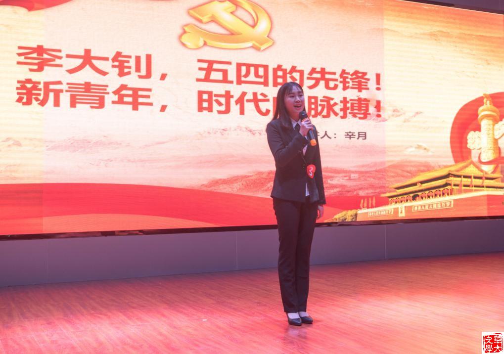 历史文化学院辛月带来的演讲《五四先锋李大钊,时代脉搏新青年》声情并茂,令人动容。回顾历史,李大钊忧国忧民、热爱祖国的思想振聋发聩;展望未来,青少年继往开来、振兴中华的责任义不容辞。演讲最后,辛月引用梁启超的《少年中国说》激励当代青年应担负时代重任,奋力前行。
