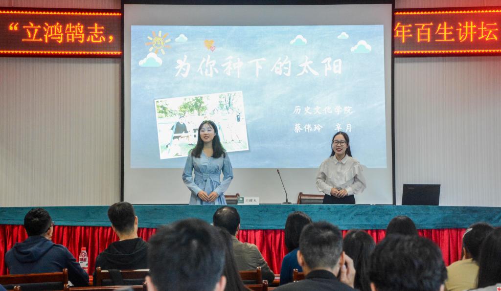 辛月和蔡伟玲选材独特,创作新颖,以情景剧的形式讲述了以“为你种下的太阳”为主题的支教经历,将支教比作种太阳,她们用15天的短期支教点亮孩子的星空,为山村孩子建造一座梦想城堡。演讲生动流利,感染力强,赢得台下阵阵掌声。