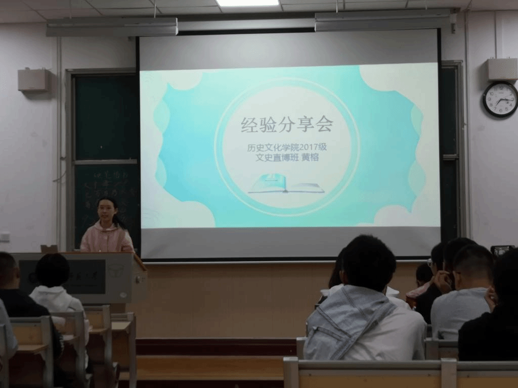 (通讯员 李悦 战彤彤)11月3日,志存高远,砥“历”前行——历史文化学院专业学习经验分享会于1201教室成功举办。历史文化学院2017级师范生莫倩兰、范黎恺,2017级文史直博班黄榕给2019级新生带来了关于大学学习经验的分享。