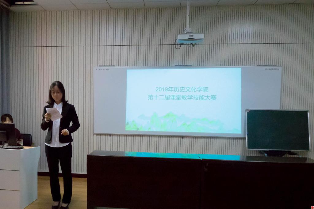 (通讯员 张丽芹 陶亚辉 )11月7日下午,历史文化学院第十二届课堂教学技能大赛于1215教室成功举办。本次大赛由历院师范生工作部主办,旨在提高师范生的教育教学能力。莅临现场的嘉宾有历院党委副书记康薇、中国近现代史研究室老师向佐军、中国史教研室老师吕思静,1901班宋世鸽担任本次大赛主持人。