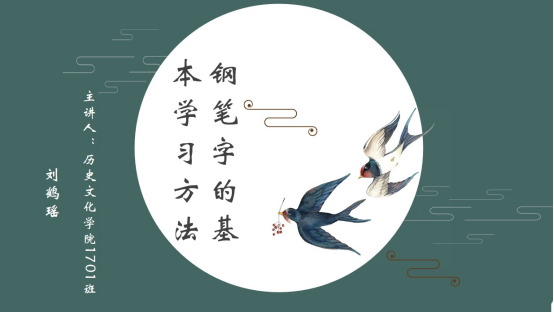 钢笔字培训的主讲人是华中师范大学第十二届书写技能比赛获奖者刘鹤瑶。刘鹤瑶从写字的基本准备开始讲解,包括纸、笔、字帖的选择和握笔的正确姿势。然后,她对临摹方法进行了细致的讲解:练好钢笔字的重点是临而不是摹;练字要完成从读帖到临帖再到背帖的过程。接下来,刘鹤瑶以长横和悬针竖为例,对于如何实践练字方法进行了详细的说明与示范,并指出了在练字中的一些常见的误区。在钢笔字培训的结尾,她勉励同学们不要急于求成,练字是一个长期的过程。