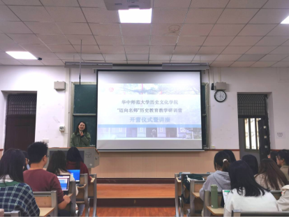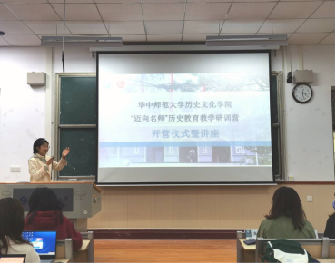 (通讯员 邢易茗 景甜甜)11月12日中午,华中师范大学历史文化学院2019级“迈向名师”历史教育教学研训营开营仪式暨讲座在1201教室举行,历史文化学院党委副书记康薇,2019级本科辅导员、院师范生工作部指导教师秦玉琴,研训营指导教师张雪、向佐军出席本次活动,2019级师工部方潇同学担任主持人。