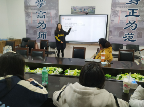 在分享专业学习的心得时,李悦重点围绕“如何提升个人综合素质”这个话题进行讲解。她表示,提升个人综合素质的方法有很多,同学们可以选择参加比赛、参与科研项目、锻炼文笔或锻炼外语水平。李悦不仅为同学们推荐了师范生可以参加的一些技能比赛:“迈向名师”师范生微视频比赛、“心火杯”华中师范大学教学技能比赛等等,还详细分享了个人的参赛和参与科研项目的经历。