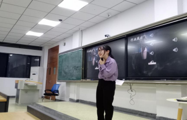 播放完音频片段后,课堂进入作业展示环节。蔡伟玲挑选了六段来自同学们课后录音作业中的音频,在为同学们播放之前,她提醒同学们要思考音频中的优缺点。每放完一段音频,蔡伟玲便邀请同学谈谈对音频的看法,同学们就音频中的语调、语速、情感处理、轻重音、配乐选择等方面各抒己见。蔡伟玲也对音频逐一进行补充点评,加深了同学们对普通话朗诵技巧的理解。