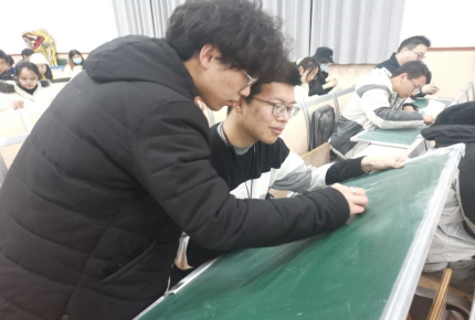自主练习在粉笔字学习中是十分重要的,因此,张景乔让同学们对粉笔字书写技巧进行自主练习,在同学认真练习的同时,培训也接近尾声。在培训课堂结束后,他让同学们扫描二维码填写问卷,通过课后练习题对本次粉笔字培训的效果进行了调查。在做练习的过程中,同学们回顾了本节课的要点,巩固了粉笔字相关理论知识。