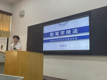 (通讯员林子欣石楠)10月23日下午,我院本科2021级师范生第一次粉笔字书写技能培训在7105教室成功举办。本次培训由未来教育家联盟与历史文化学院师范生工作部、“历行”学习发展中心共同承办,未来教育家联盟书写能力训练指导团团长张景乔担任主讲人。培训主题为“粉笔字技法的书写常识”。