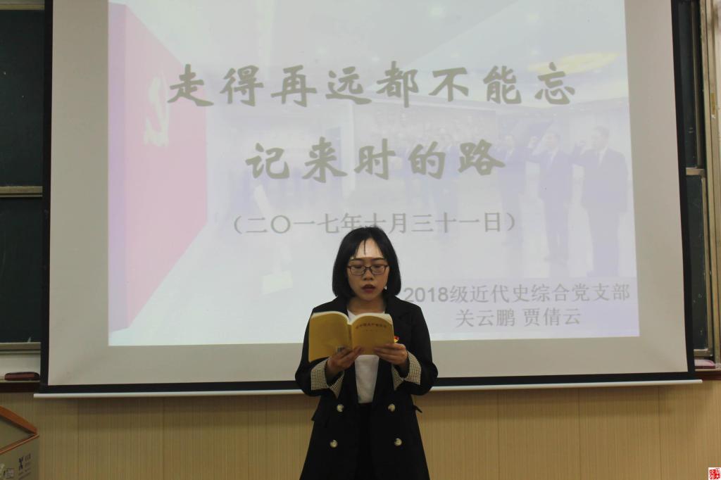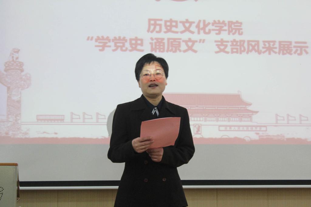 (通讯员蔡雨倩谭思思高成龙)4月30日,历史文化学院“学党史 诵原文”支部风采展示于历院1201教室举行。学校党委组织部副部长、党校副校长夏守信、历史文化学院党委书记纪红、正处级组织员周政华、党委副书记康薇、副院长付海晏、副院长尤学工、历史系主任罗爱林、工会主席许小青、近代史所党支部书记魏文享出席此次活动并担任评委嘉宾。全体辅导员、全体学生党员参与本次活动。2019级硕士生综合党支部邱晴担任活动主持人。