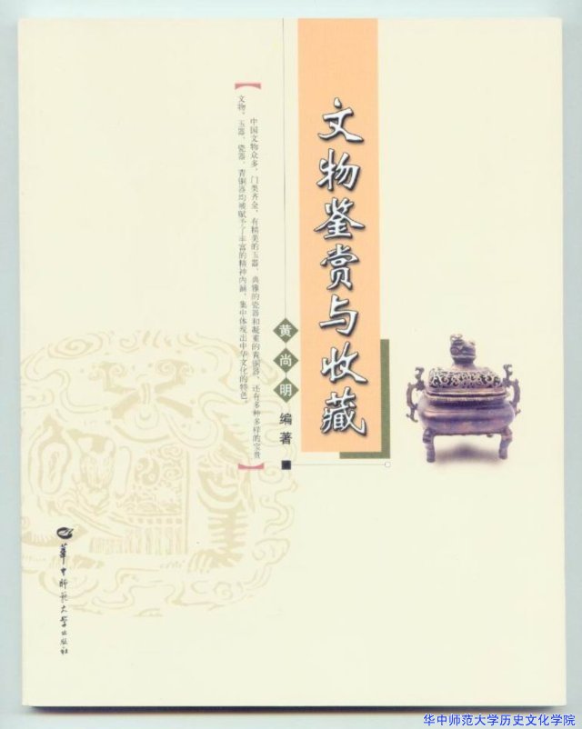 为了提高大学生的综合素质,培养学生热爱文物的兴趣,提高鉴赏文物的能力,华中师范大学出版社最近出版了一本黄尚明教授编著的大学教材:《文物鉴赏与收藏》。