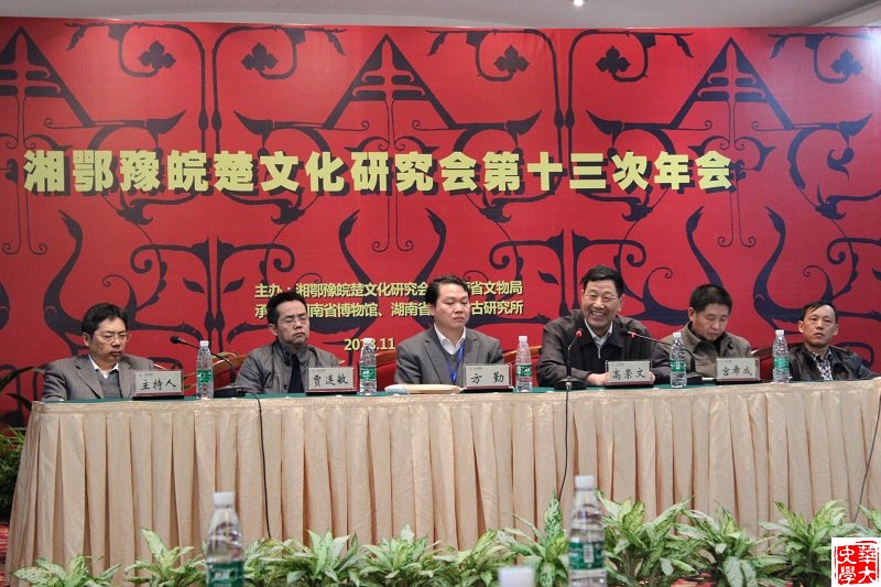 2013年11月22日- 25日,湘鄂豫皖楚文化研究会十三次年会在湖南长沙召开,来自全国多地文物考古部门、高等院校和研究机构的100余名专家学者参加了本次会议。我院蔡靖泉、顾久幸、黄尚明、宋亦箫、傅玥和王洪强等老师,我校美术学院李会老师,以及我院校友,湖北省社科院王准、河南大学历史学院赵炳清、湘潭大学历史系蒋波、湖北省博物馆杨理胜等老师提交论文并参加了会议。