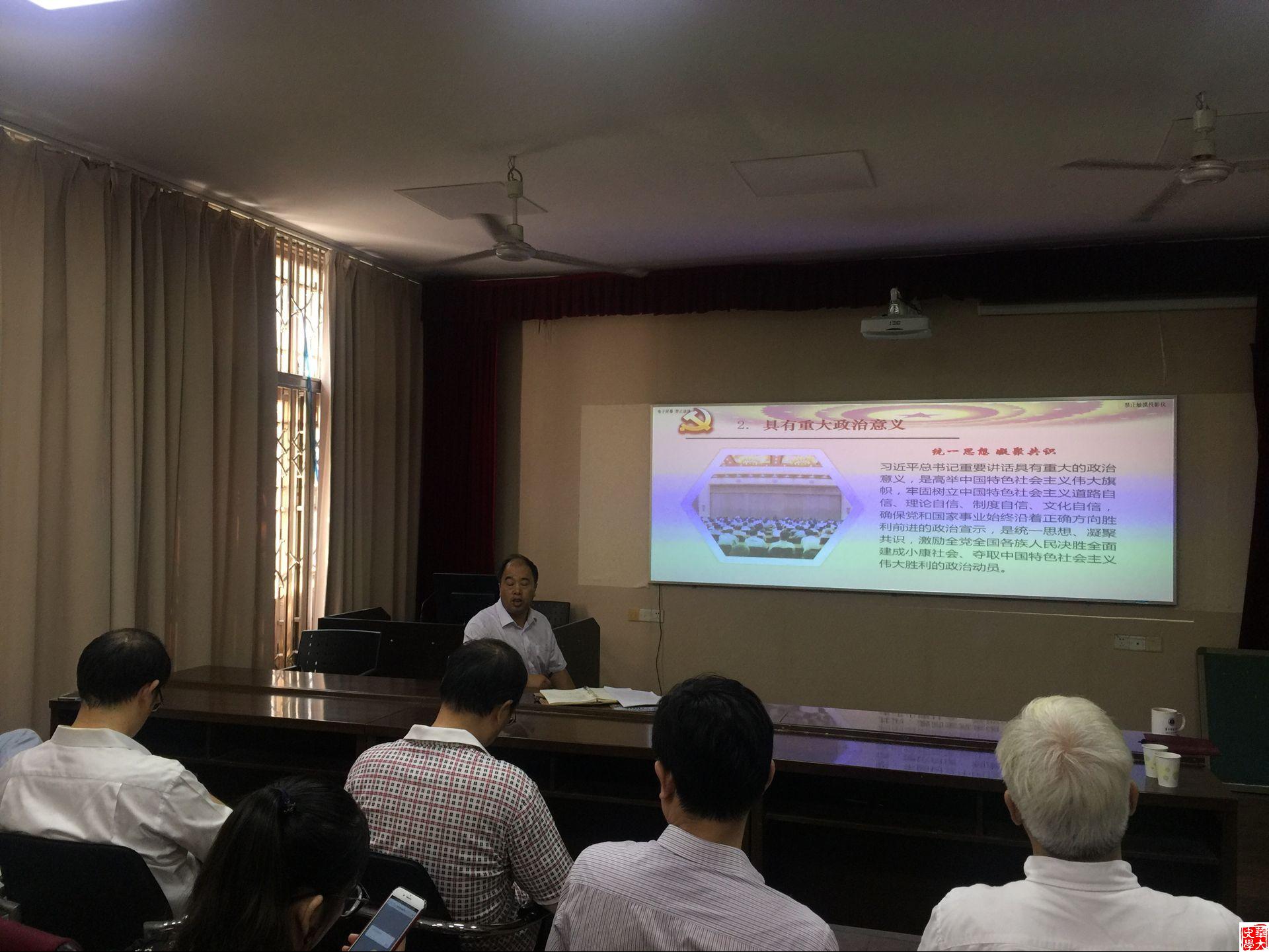 会上,寇富安书记带领大家学习习近平总书记“726”重要讲话精神,认真学习领会讲话的丰富内涵、精神实质、基本要求,切实把思想和行动统一到讲话精神上来,以实际行动和优异成绩迎接党的十九大胜利召开。吴琦院长还结合学院创一流学科的工作,谈了心得体会。