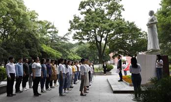 (通讯员 韩成桢)  5月28日14点30分,根据《中国共产党章程》第一章第六条规定:预备党员必须面向党旗进行入党宣誓的要求。华中师范大学历史文化学院组织新预备党员在校内恽代英同志雕像前进行了庄严隆重的入党宣誓活动。活动由贺灿辉老师主持,秦玉琴老师出席并致辞。恰逢中国共产党建党100周年,此活动具有极其重要的意义。