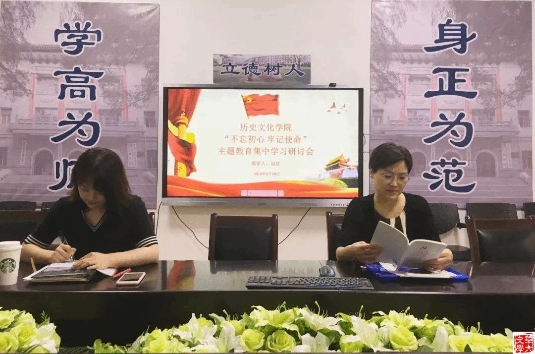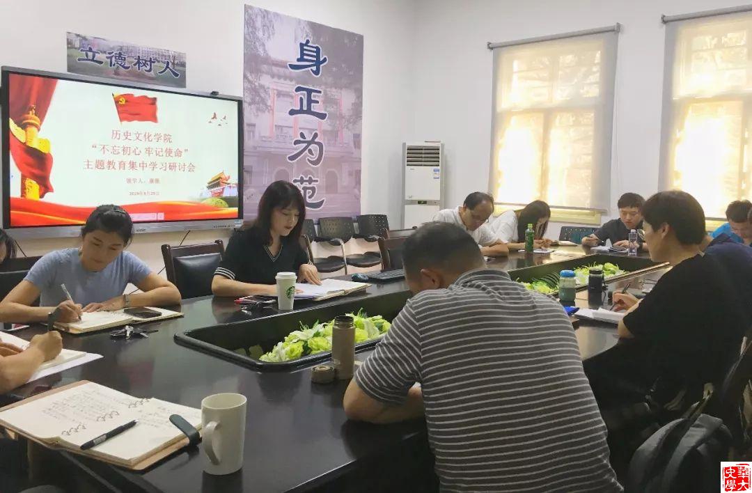 9月29日下午,华中师范大学历史文化学院“不忘初心、牢记使命”主题教育领导班子集中学习研讨会于学院党员活动室顺利举行。本次集中学习研讨会的主题是学习新党章以及习近平总书记关于教育的重要论述。学院党委书记纪红、副书记康薇分别领学,学院领导班子、党委委员、党员代表参与学习研讨。