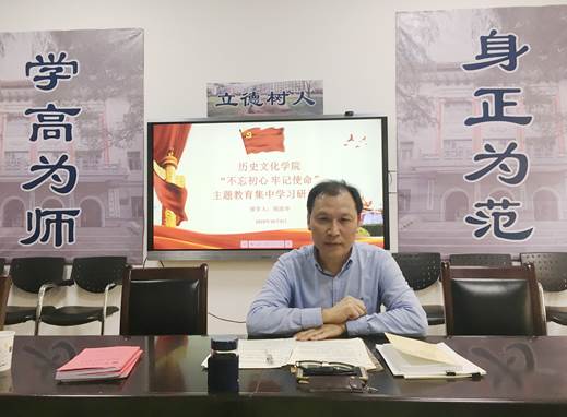 (通讯员 齐远飞)10月9日下午,华中师范大学历史文化学院“不忘初心、牢记使命”主题教育领导班子集中学习研讨会于学院党员活动室顺利举行。本次集中学习研讨会的主题是学习习近平新时代中国特色社会主义思想和中共中央办公厅、国务院、教育部及学校关于加强师德师风建设与研究生培养的文件精神。学院正处职组织员周政华、副院长付海晏分别领学,学院领导班子、党委委员、师生党员代表参加学习研讨。