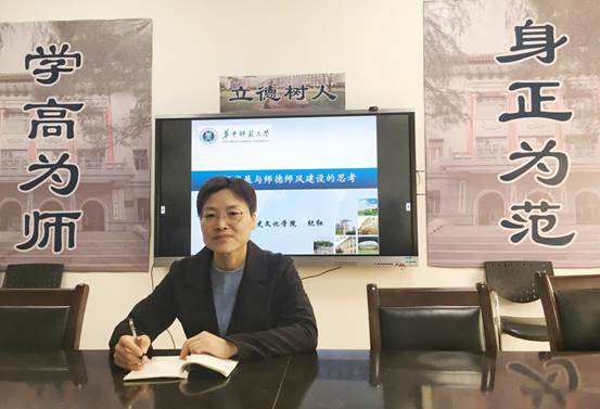(通讯员 齐远飞)10月23日上午,华中师范大学历史文化学院“不忘初心、牢记使命”主题教育专题党课于学院党员活动室顺利开展。本次专题党课由学院党委书记纪红、正处职组织员周政华、党委副书记康薇分别主讲“教师发展与师德师风建设的思考”、“史学的参与,参与的史学——促进教书与育人、业务与党务的深度融合”、“关于加强党风廉政建设工作的学习与思考”。学院领导班子、行政党支部和师生党员代表参加学习。