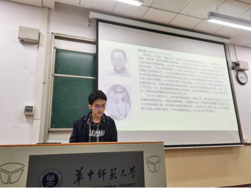恽代英雕像巍然立于桂子山上,经历多载四季轮回,仍然不惧雨打风霜。瞿万纪同学为同学们讲述了华中师范大学著名校友,中国共产党早期的重要领导人之一,杰出的政治活动家、理论家,著名的青年运动领袖,恽代英的故事。