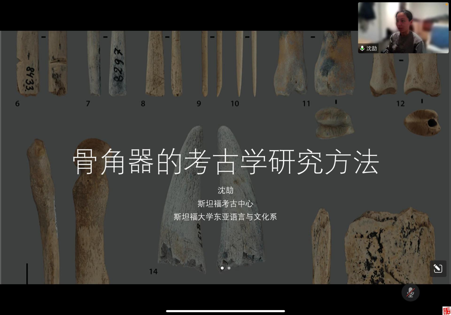 2023年4月13日上午10时,受历史文化学院文化学系及楚学研究所副教授傅玥老师的邀请,来自斯坦福考古中心的沈劼博士在腾讯会议上以网络授课的形式为“先秦考古”课堂的同学们做了一次关于骨角器的专题讲座。沈劼博士从“考古学见人还是见物”为导引,回顾了骨角器从原料、生产、流通、使用、废弃、出土等“一生”的历程。接着,她依次对考古发掘出土的骨角器涉及的每个主要环节需要开展研究的主要问题、对象、鉴定和研究方法等进行了详细的阐述,其中包括了类型学、实验考古、微痕分析、残留物分析、同位素、GIS地理信息系统等一系列考古学重要的研究方法。她认为考古学研究的骨角器类型、材质等背后反映的都是人类某些时期的活动,带有一定时期的色彩和烙印,因此,考古学的研究是既见人又见物。最后,她借鉴斯坦福考古中心著名的后过程主义考古学家伊恩·霍徳教授的著作《纠缠:人与物关系的考古学》,为同学们总结了骨角器研究的意义和价值:骨角器研究可以反映特定时期的人与动物关系;生产力与生产关系的相对变动;一定时期的社会结构、贸易往来和个人偏好等现象。因此,骨角器的研究既是物质史也是生活史和社会史。