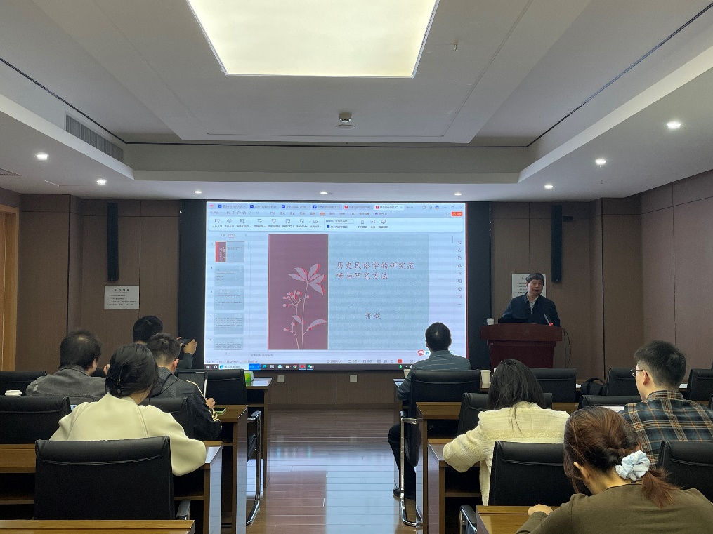 讲座伊始,萧放教授就历史民俗学的研究范畴与研究方法为大家带来讲演,萧放教授认为历史民俗学的实质是研究民俗事象的历史以及历史社会中民俗事象、记述与评论。据萧放教授指出,早在20世纪70年代的日本,“历史民俗学”这一术语便首次出现,并随后在日本和韩国民俗学界得到了深入的探讨与论证。
