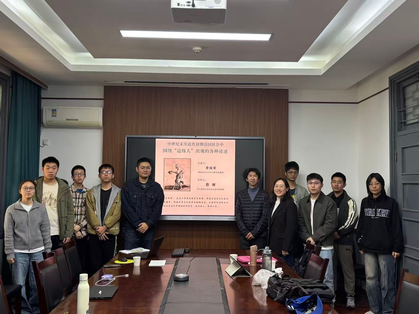 (通讯员:管鹏翔 詹娜)2025年11月16日在华中师范大学历史文化学院西一号楼319会议室,举行了题为“中世纪末至近代初期法国社会中围绕‘边缘人’出现的各种论述”的学术讲座,由韩国忠北大学历史教育系李成宰教授主讲,华中师范大学历史文化学院詹娜教授主持,本次讲座系“华大世界史青年史学讲坛、文华学堂导学”系列讲座,由华中师范大学历史文化学院、“开沅”历史学国家拔尖学生培养基地主办,吸引了众多师生到场聆听。
